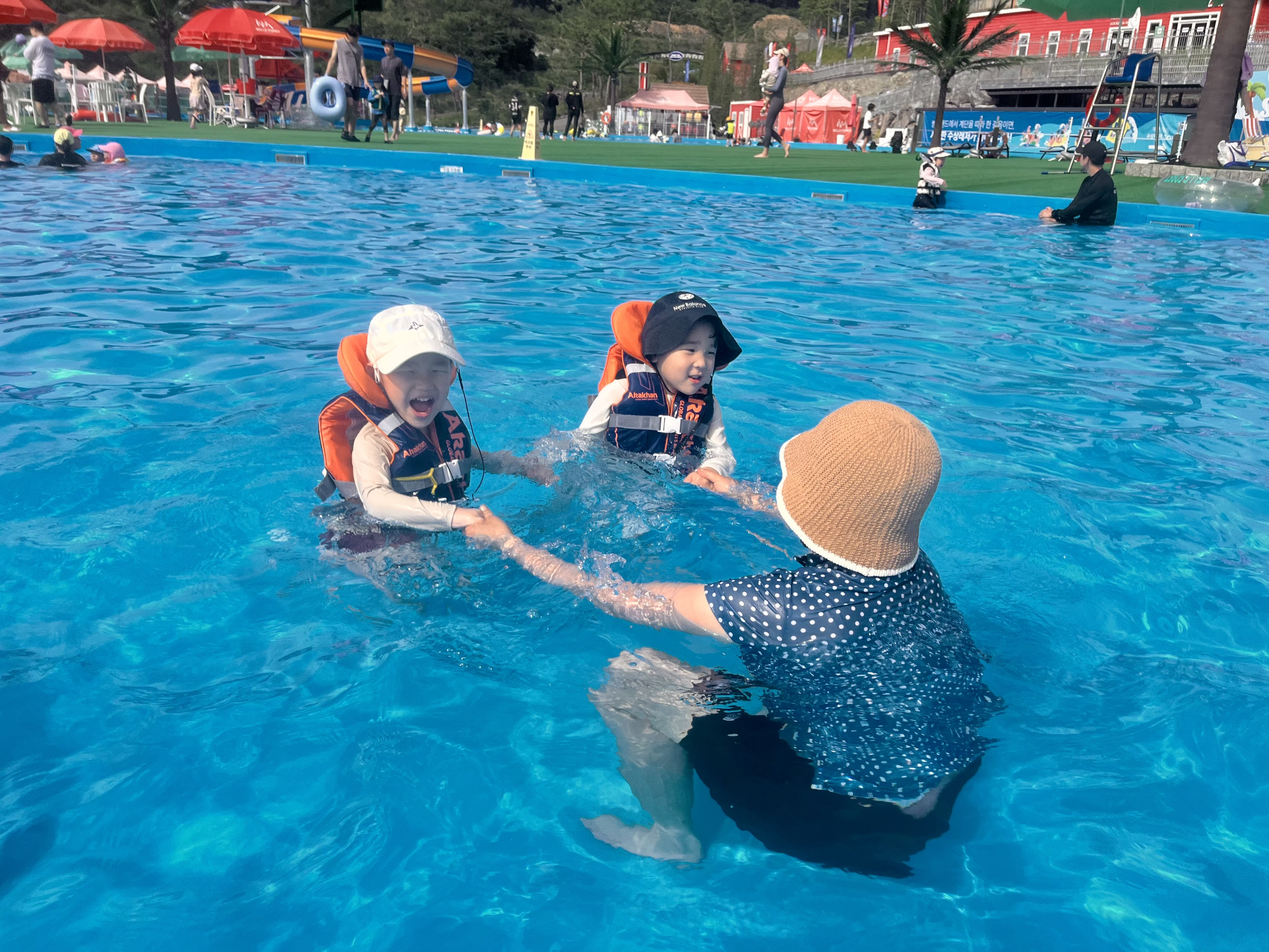하민아, 너도 얼릉 커서 형들처럼 수영해야지.
