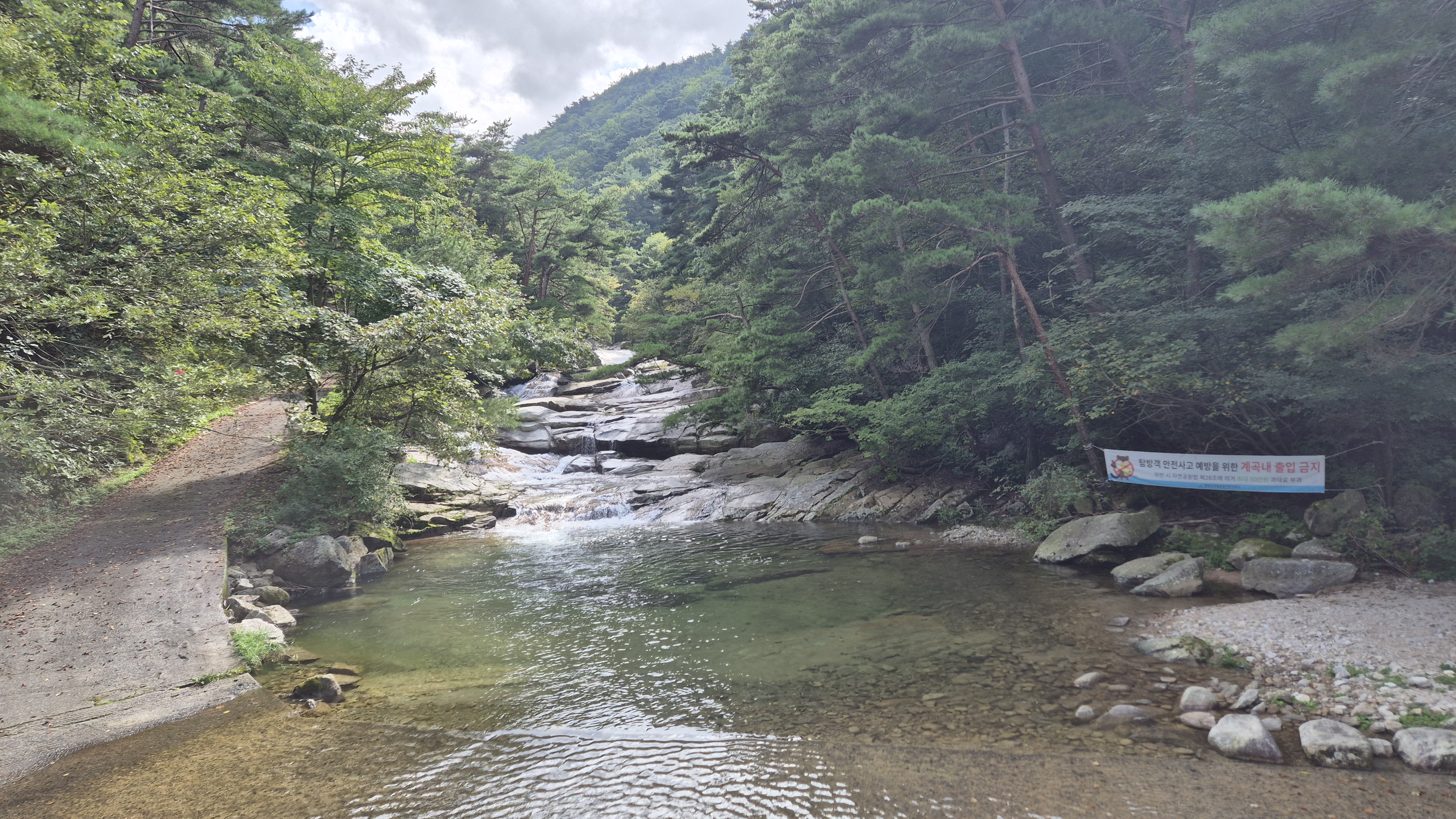 저 속으로 뛰어들고 싶지만 여전히 계곡내 출입금지다.