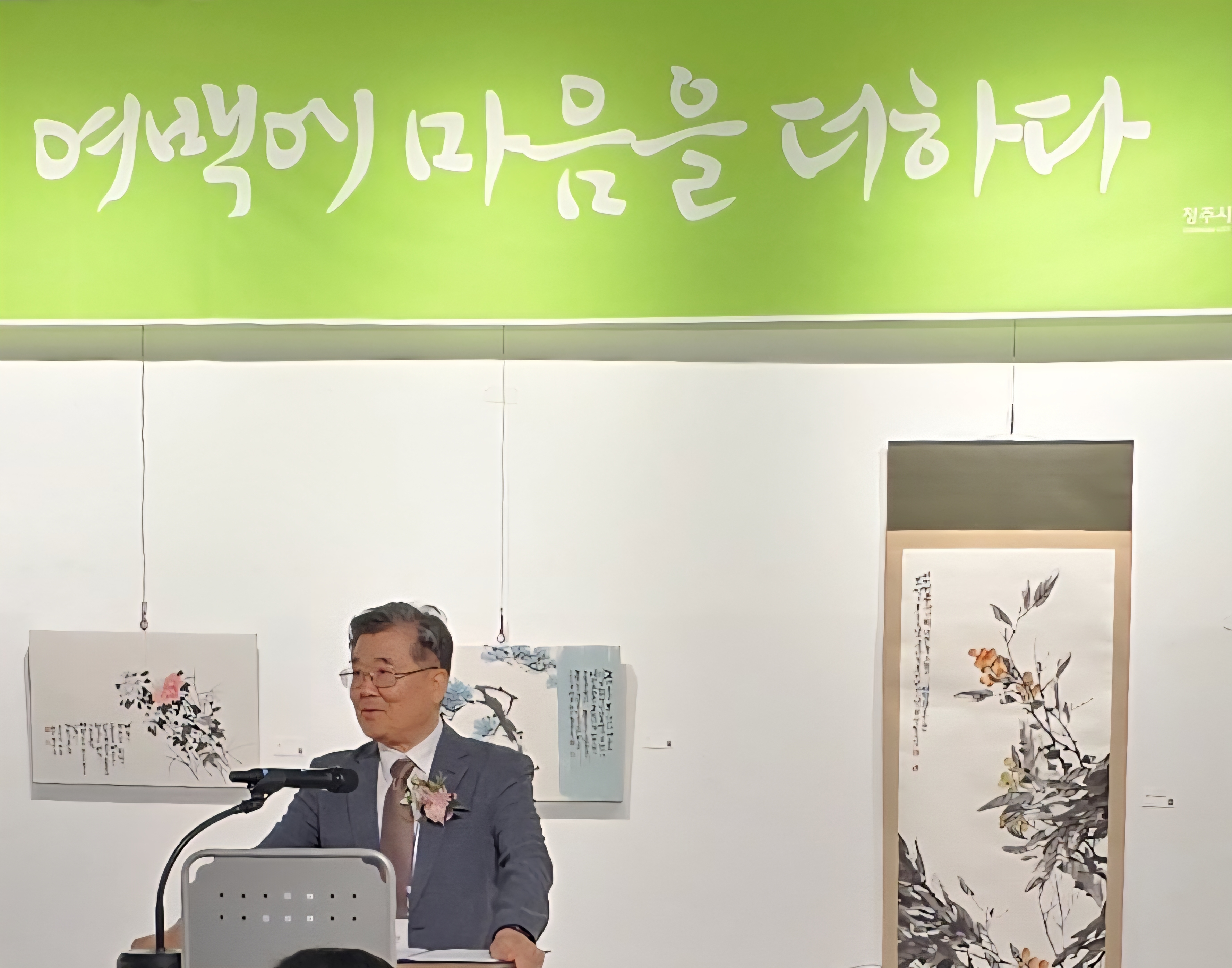 (사)한국서예협회 충북지회장 곽현기님이 축사를 하고있다.