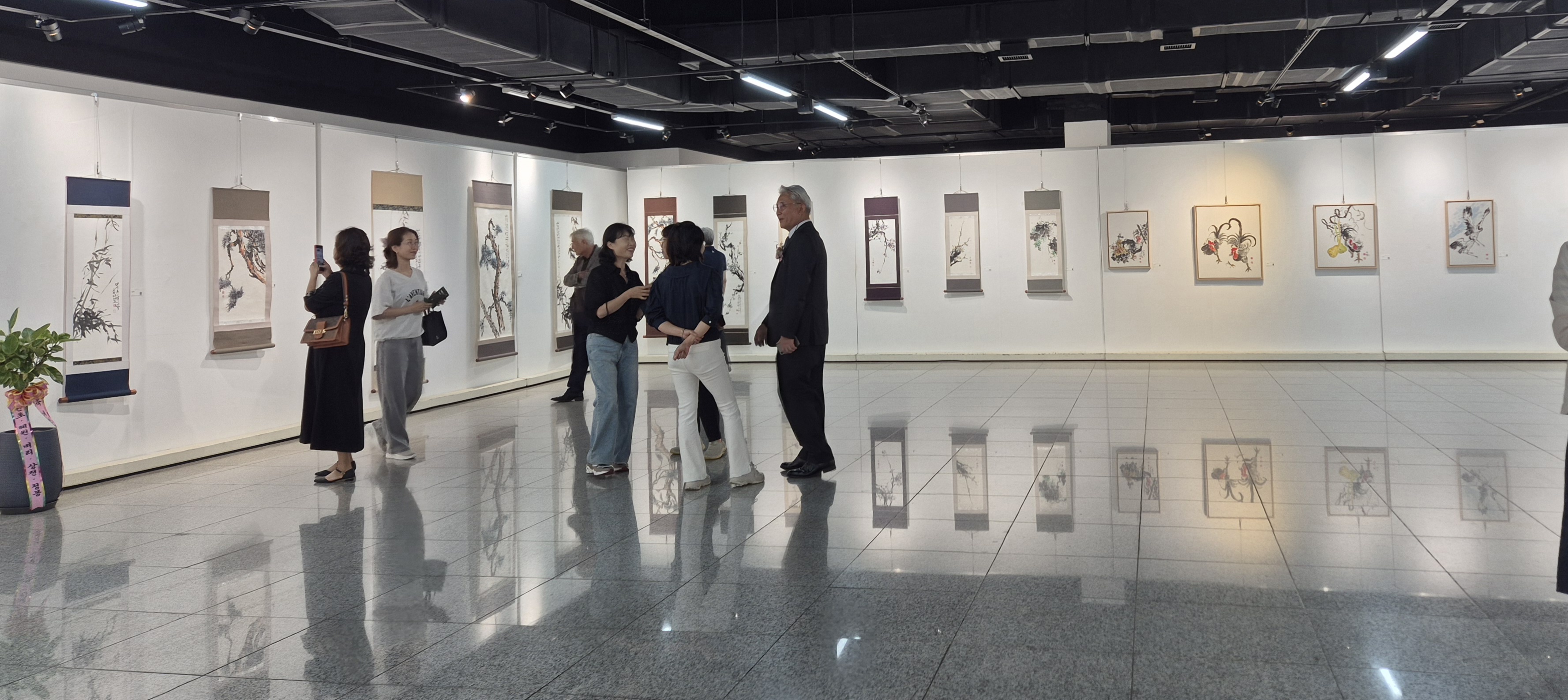 복대문인화반이 오전 수업을 마치고 전시장을 찾았다.