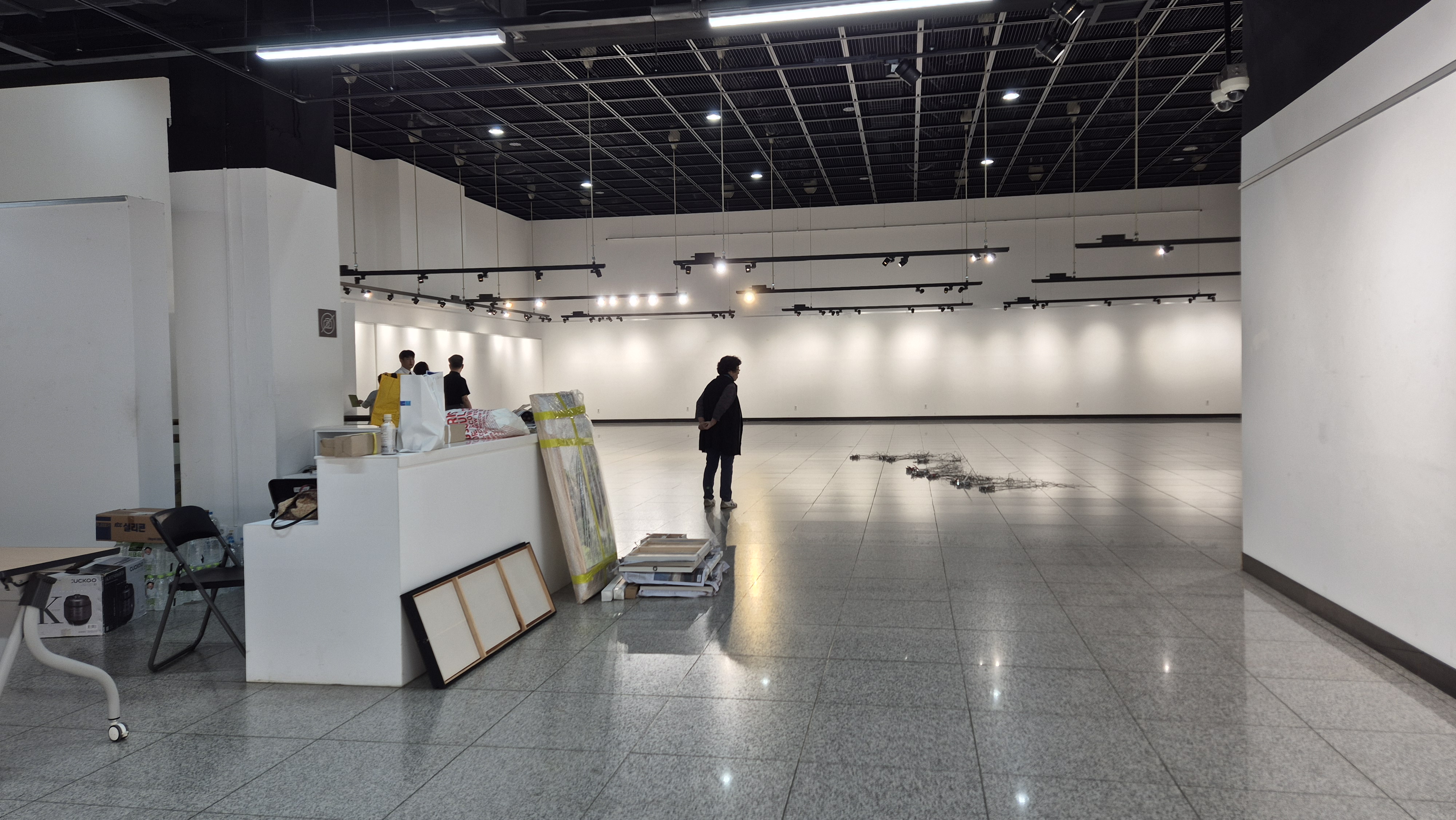 회원님들이 일찍부터 나오셔 전시장을 준비하고있다. ㅎㅎ