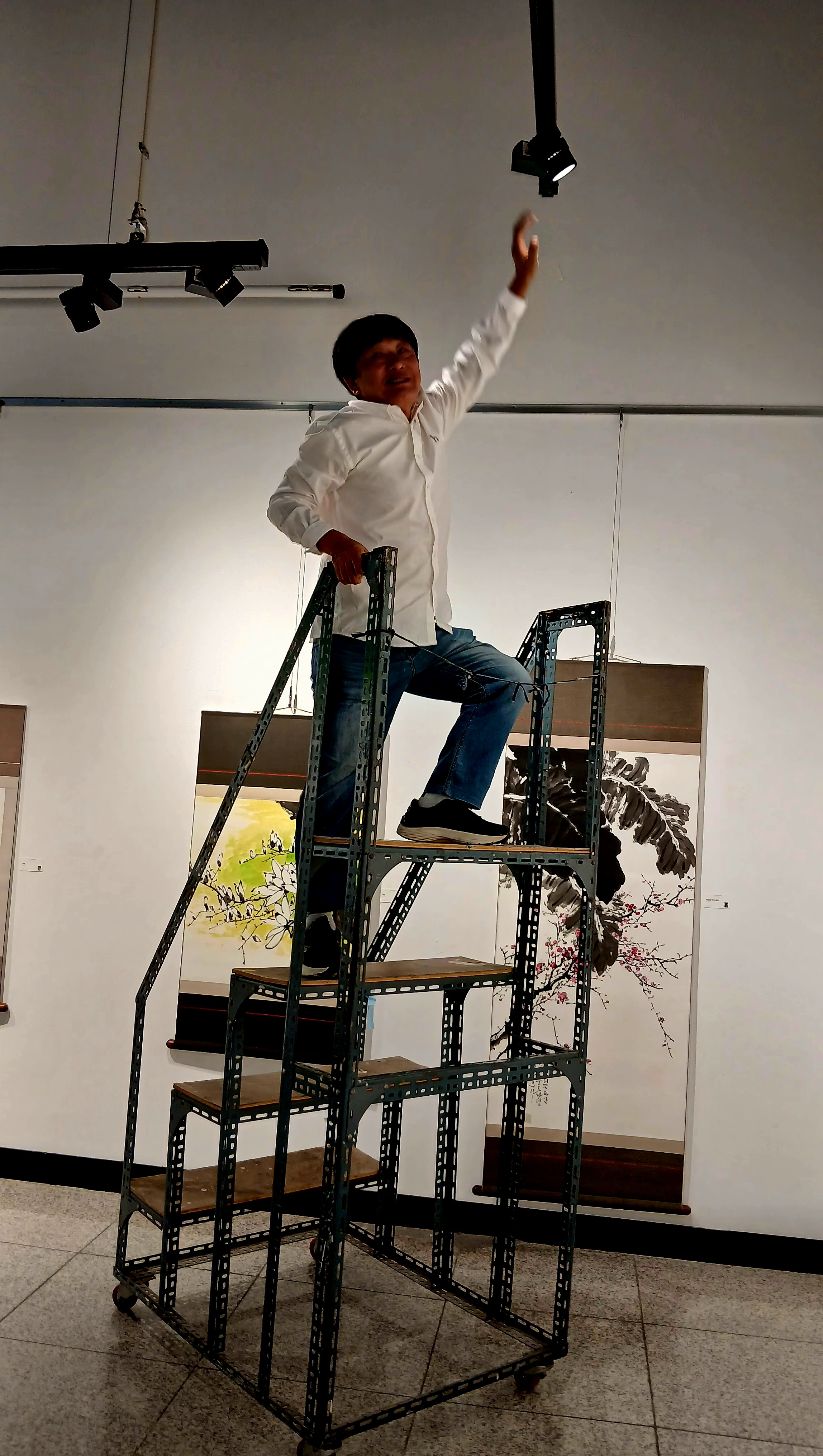 석산회장님이 신형무기(?)로 작품을 철거하고있다.
