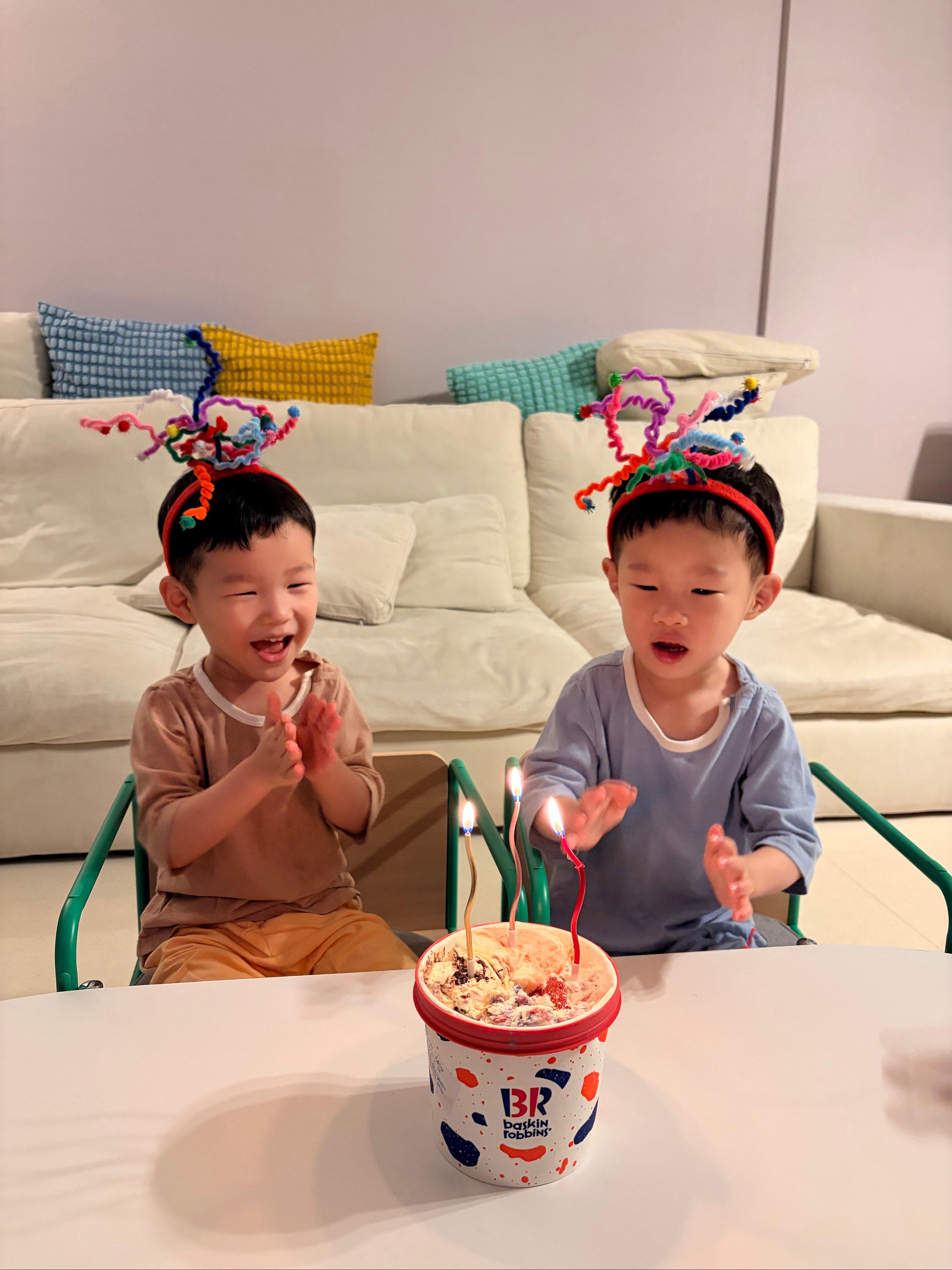 오늘 둘 다 변기에 쉬한 기념이란다. ㅎㅎ