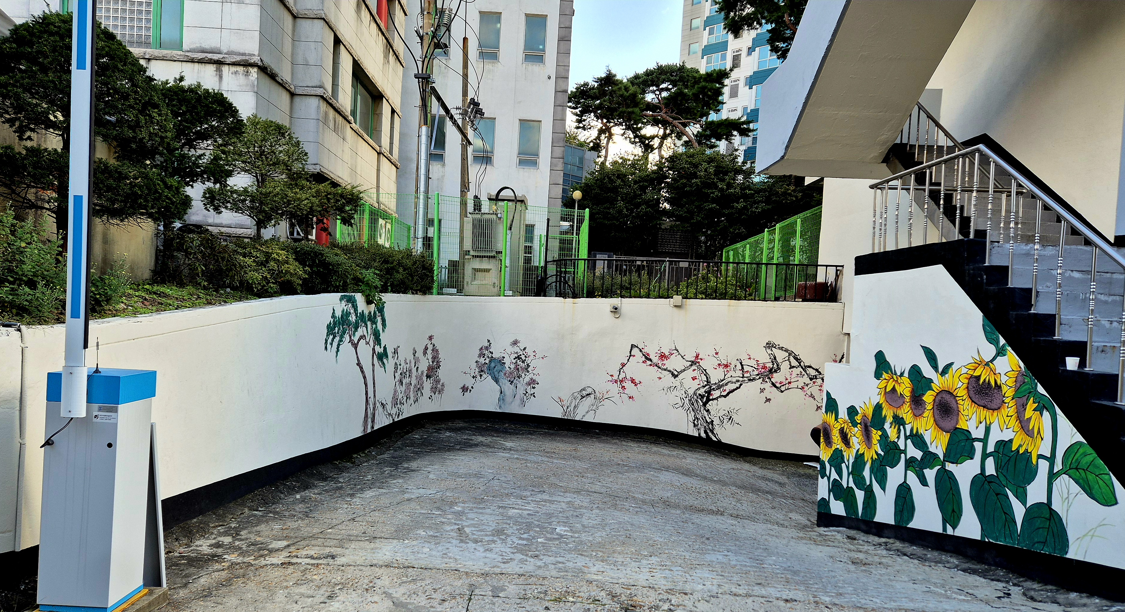 이 아파트 지하주차장 들어가는 곳이 화사해졌습니다.