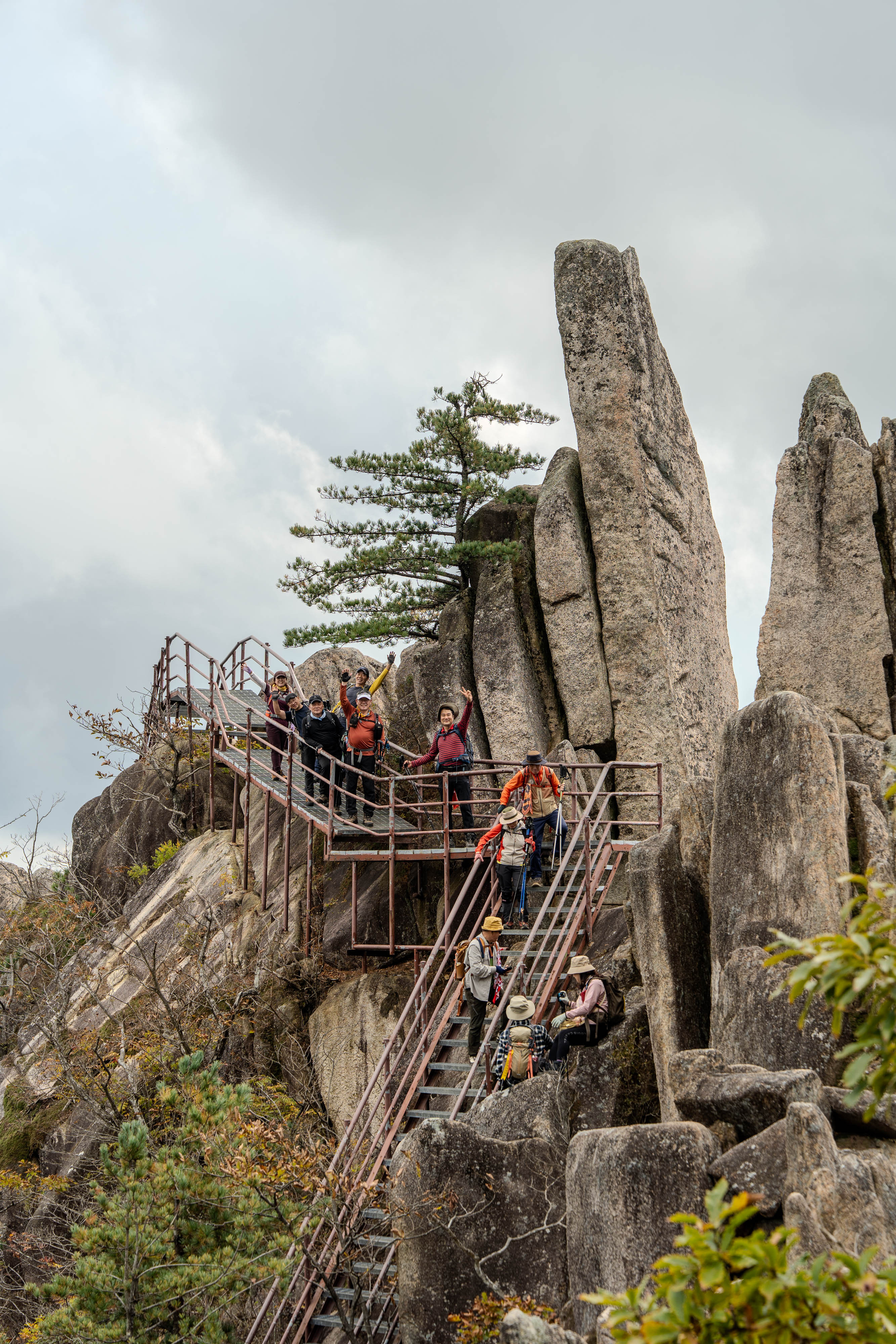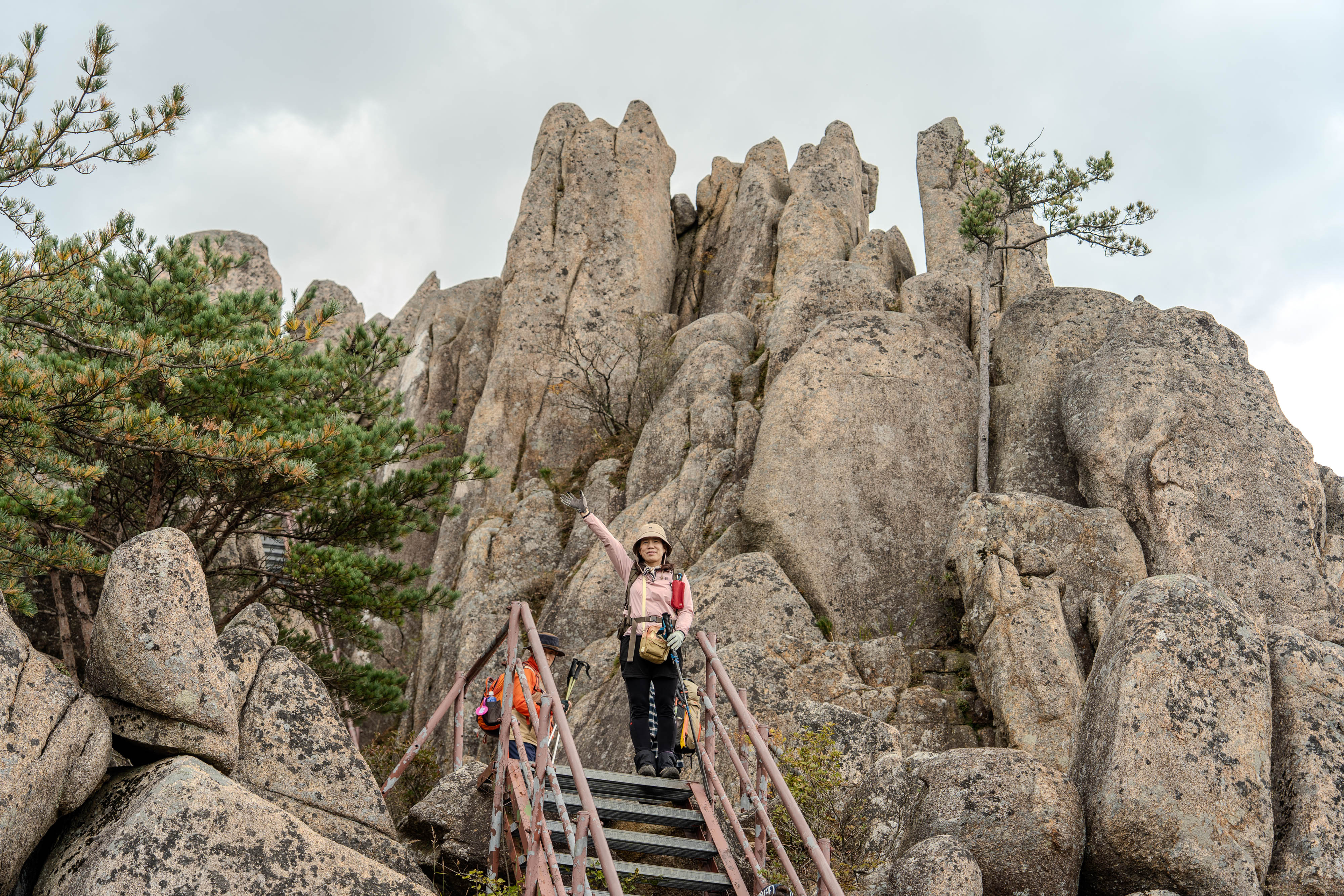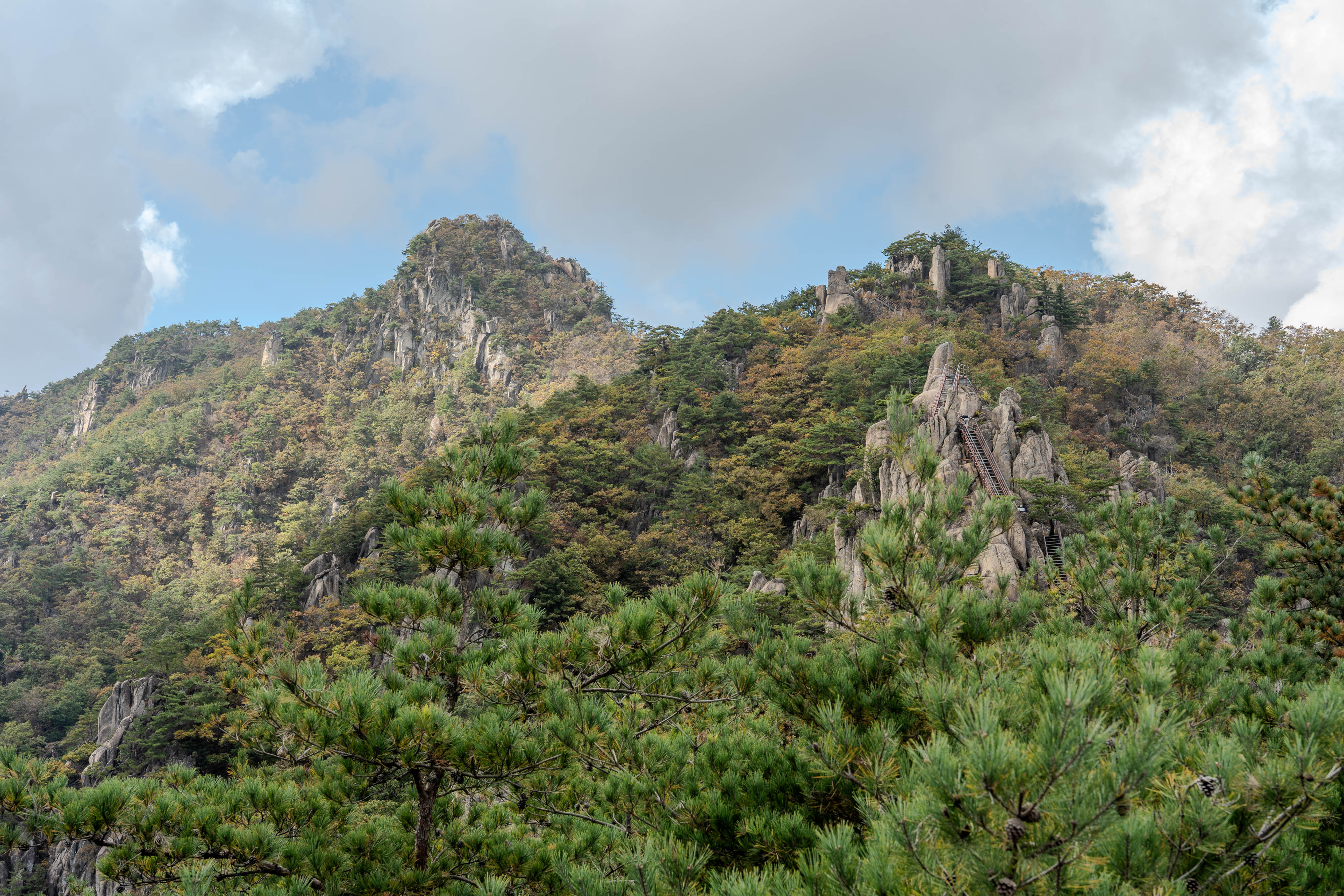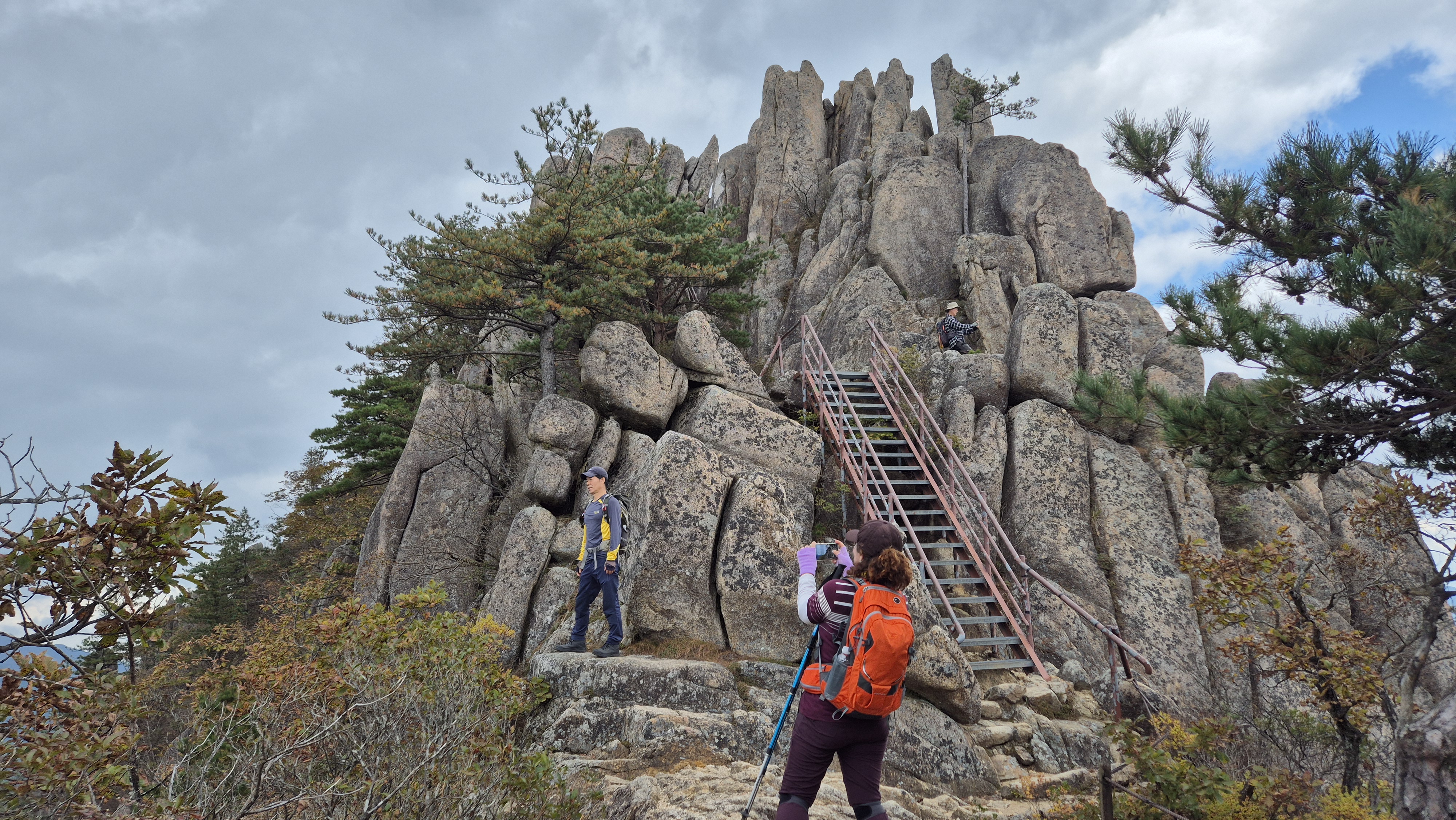올라가며 암봉과 철사다리가 이어집니다.