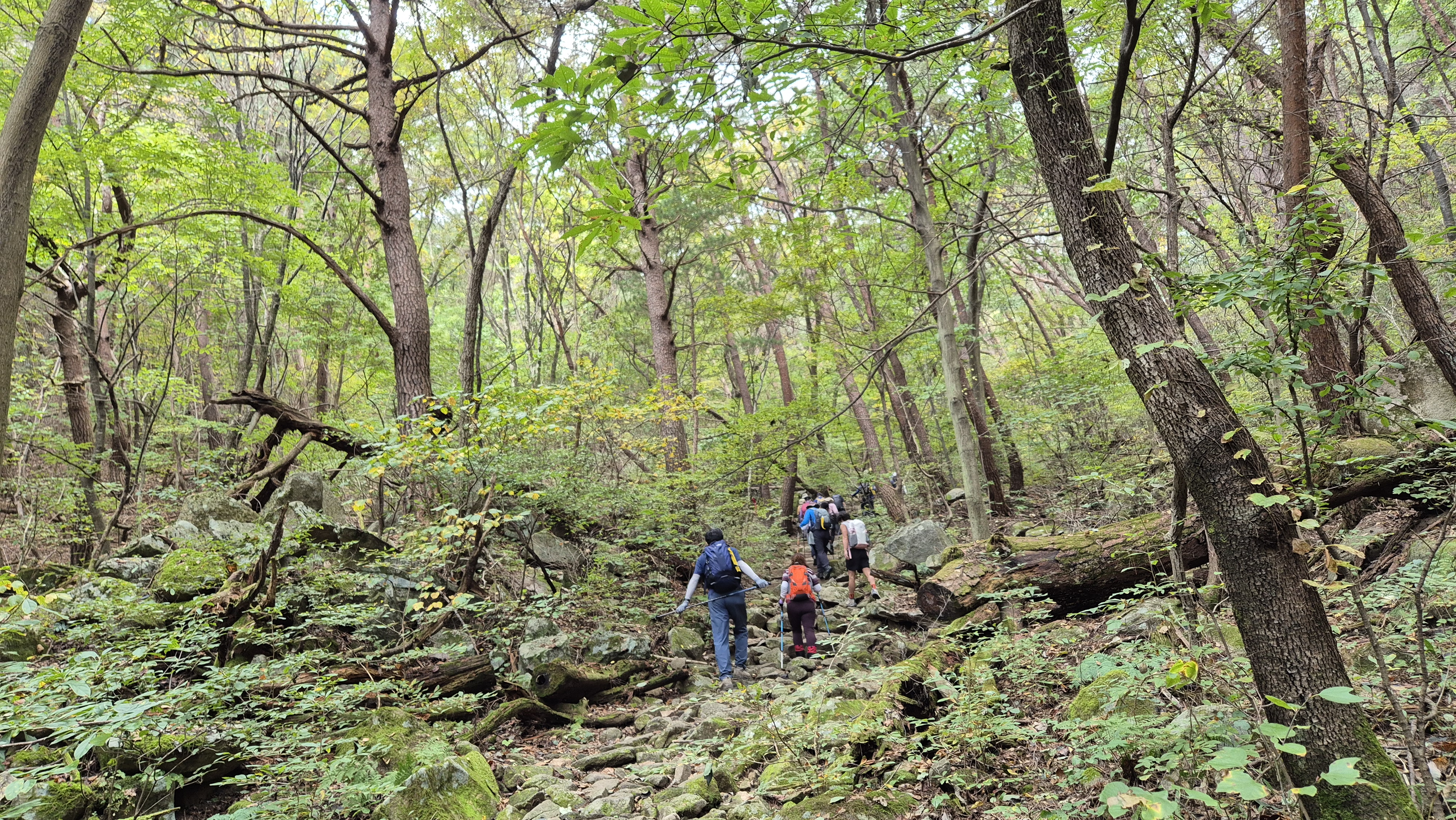 등산 길은 가파르고 험했지만 하산 길은 평탄하다.