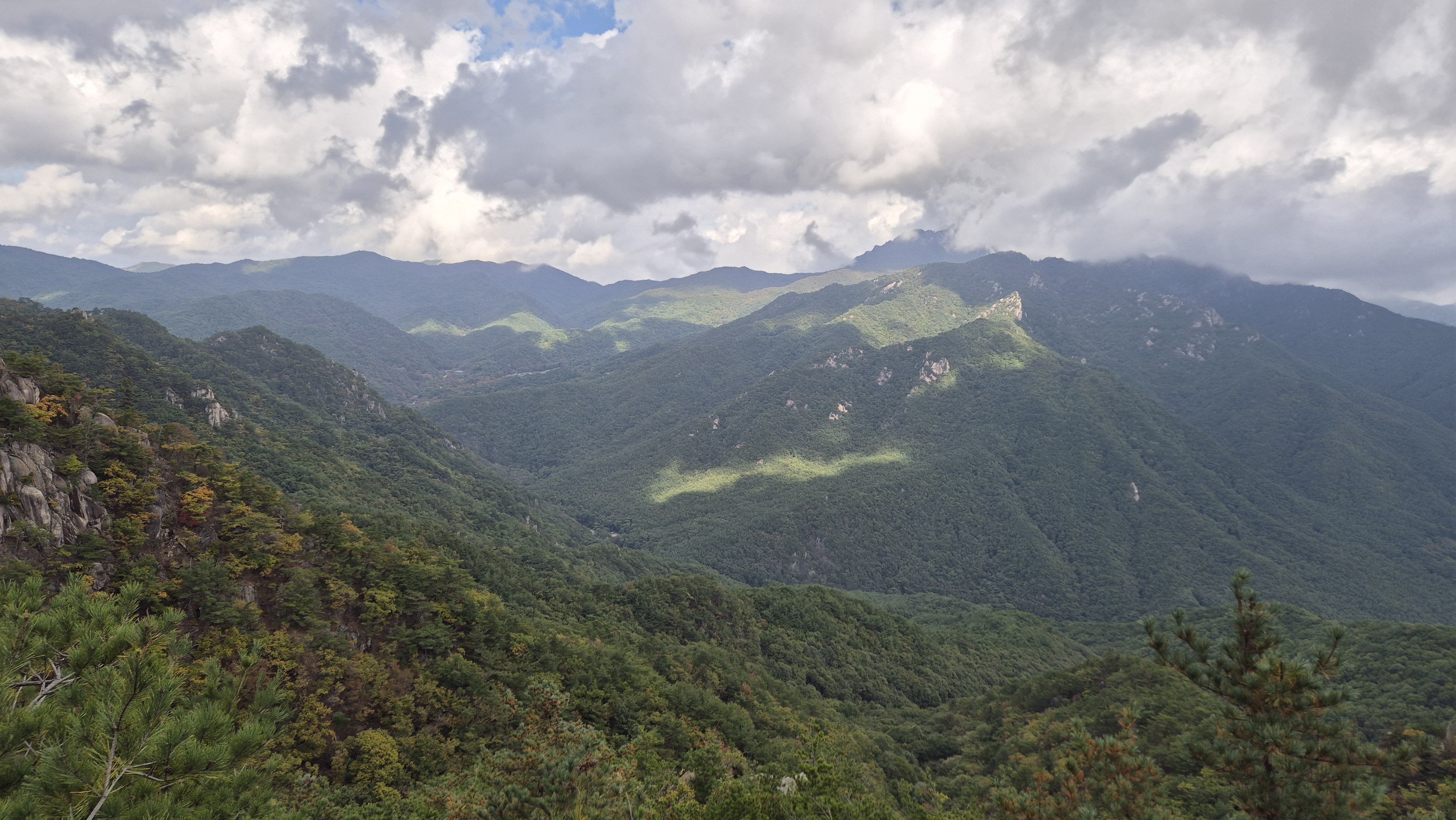 캬! 저기 구름사이로 빛이 내리고있다.