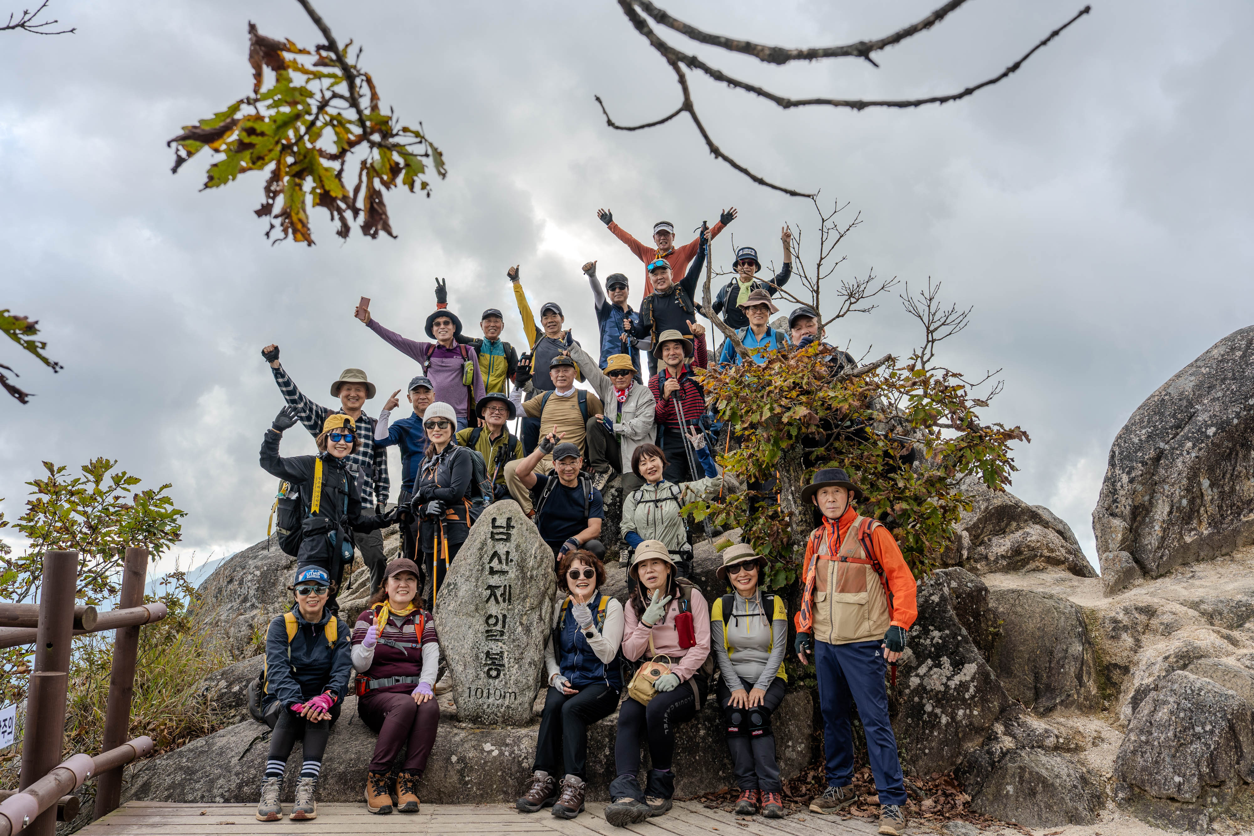 오늘 하나회원님들, 남산제일봉에서 부처님 얼굴이 되셨군요.