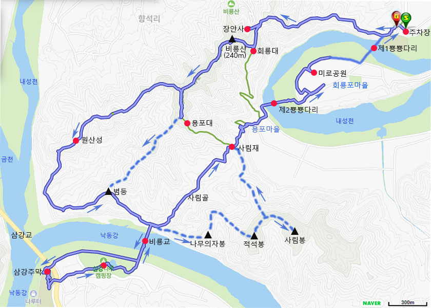 회룡대와 장안사로 향하고있다.