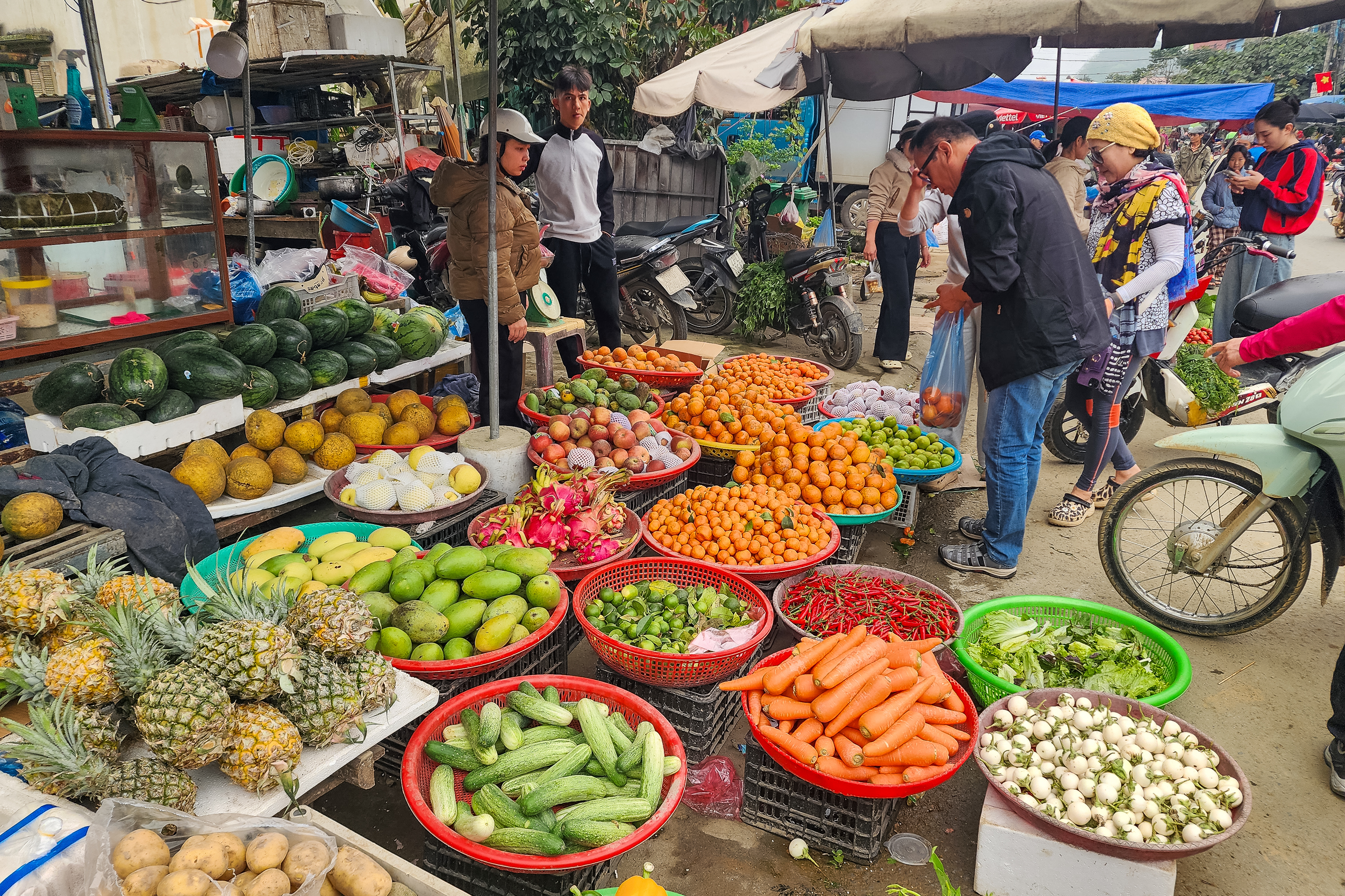 사람, 오토바이, 차량 뒤섞여 북새통이었다.