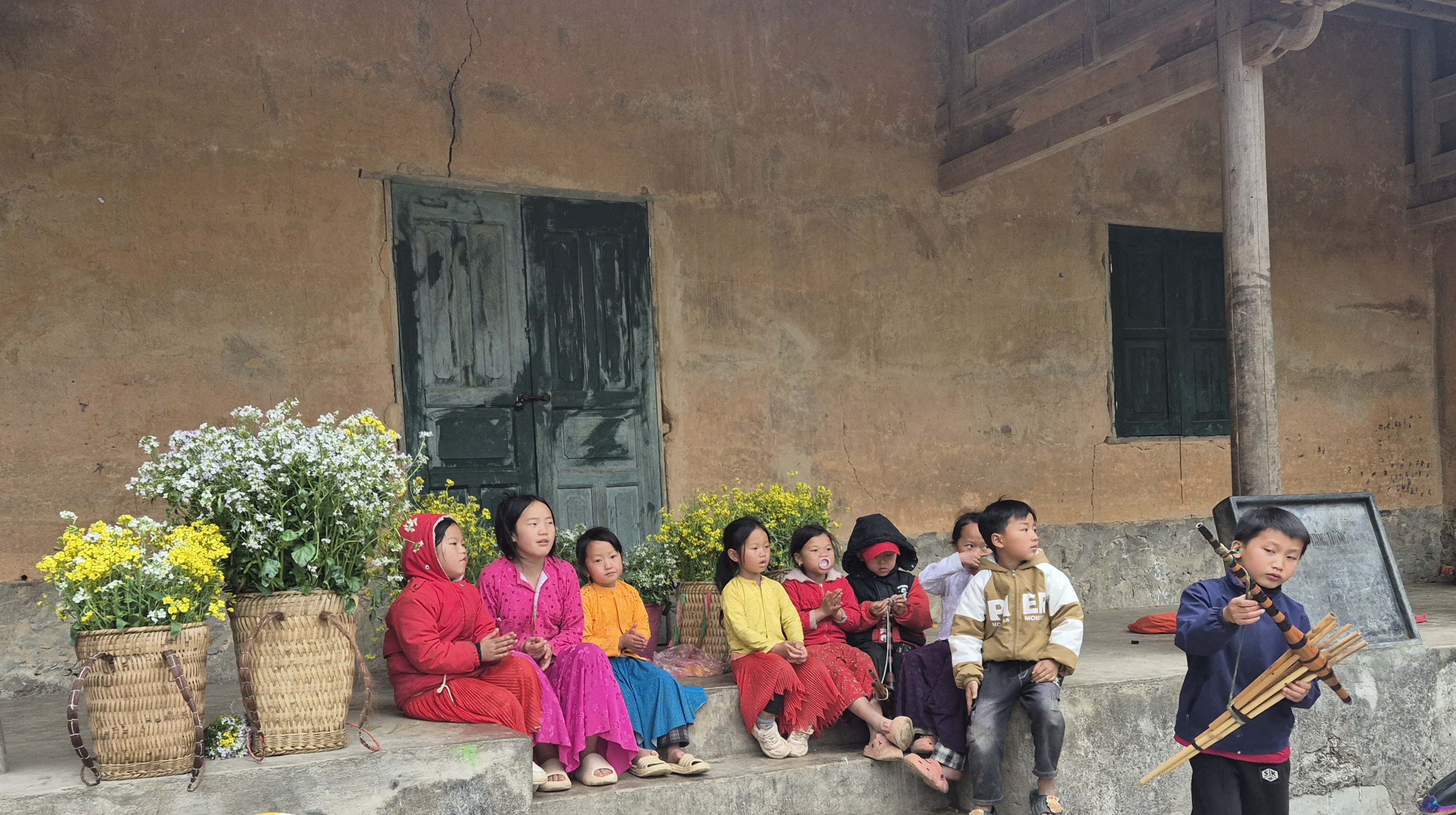 여자꼬맹이들은 꽃짐을 지고 모델(?) 노릇을 하고있었다.