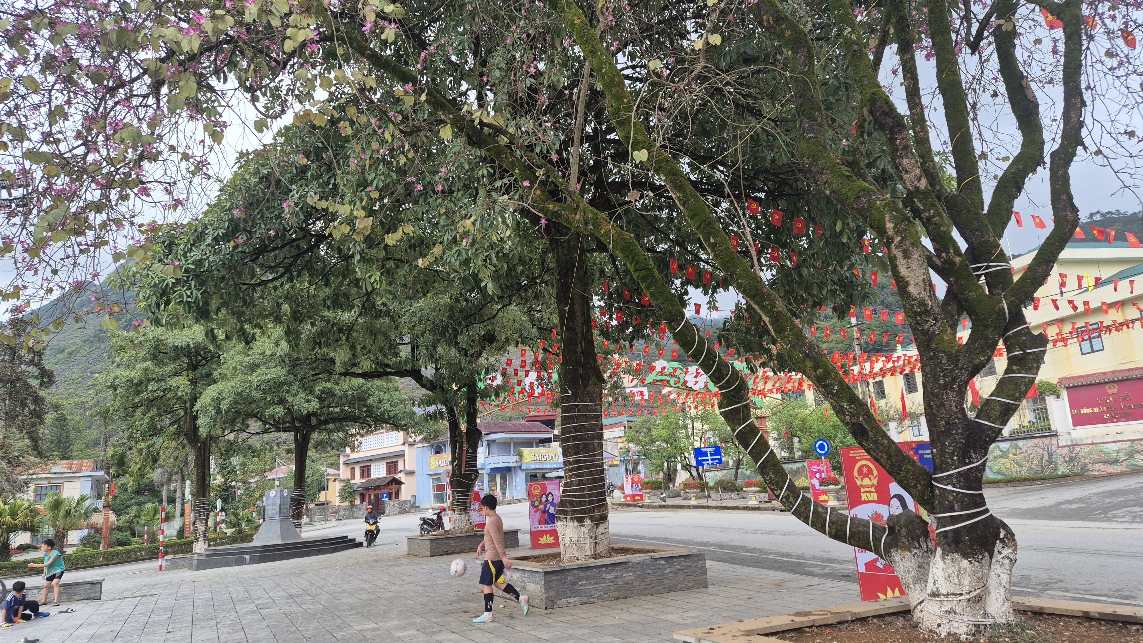 베트남기와 공산당 기는 어딜가나 펄럭이고있었다.